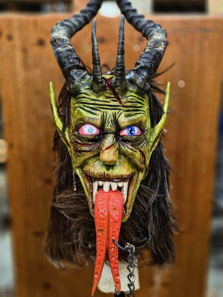 Traditionelles Schnitzen aus heimischen Hölzern, in geduldiger Handarbeit vollendet. Kraftvolle ausdrucksstarke Formen, dunkle düstere Gestalten - und ein starker Geist für Haus und Brauchtum.